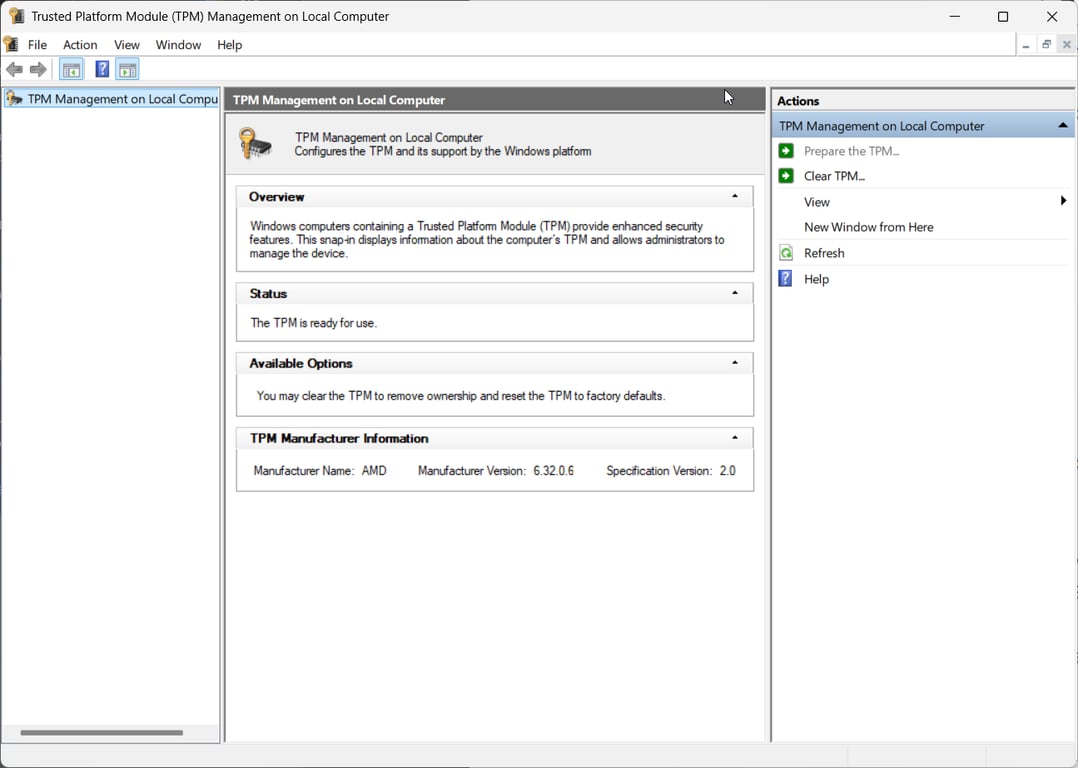 Save and reboot to confirm it’s active by running tpm.msc again.