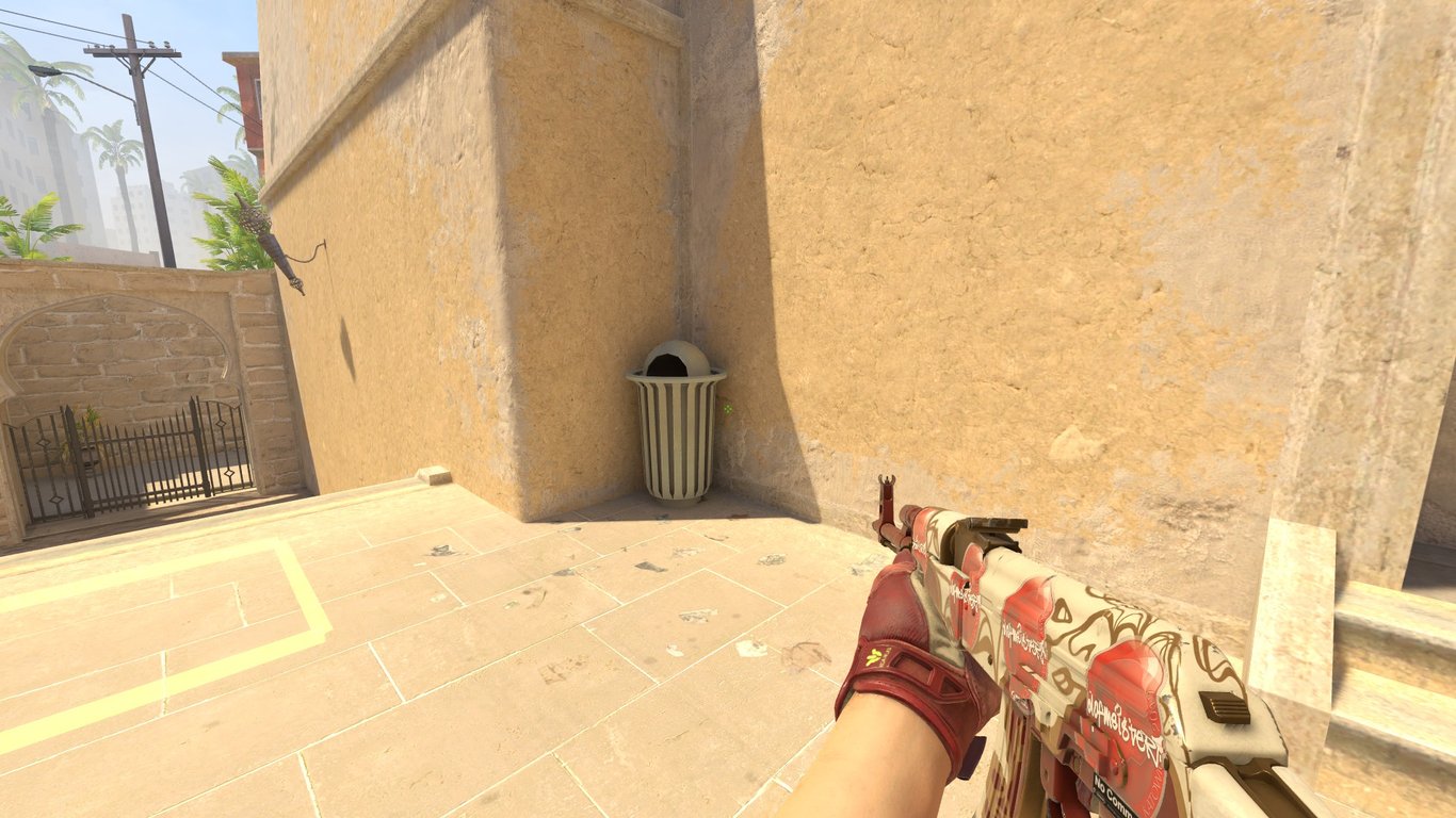 Similar to the Connector smoke, this Top Mid smoke isn’t from a set spawn, but it is so close, quick, and important that we couldn’t justify leaving it out. For the perfect Top Mid smoke, line up in this corner of the bin: