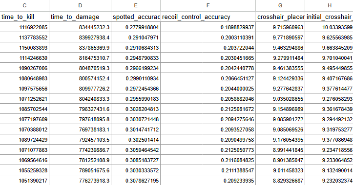 Now, all of this data comes in a variety of different metrics. For example, you have Flash Assists calculated as a raw number, Flash Time calculated in seconds, Crosshair Placement calculated in degrees, and so on. This means that the data needs to be compiled in a way that standardizes it, in order to be amalgamated into an accurate centralized rating.